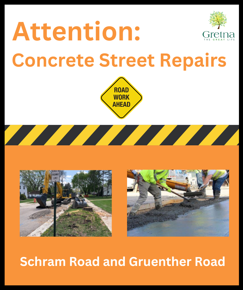 The City’s Contractor, NL&L, is set to begin concrete panel reconstruction in miscellaneous areas throughout old town and along Schram Road and Gruenther Road on Tuesday, May 27th. Construction is expected to last 3 weeks, weather permitting.