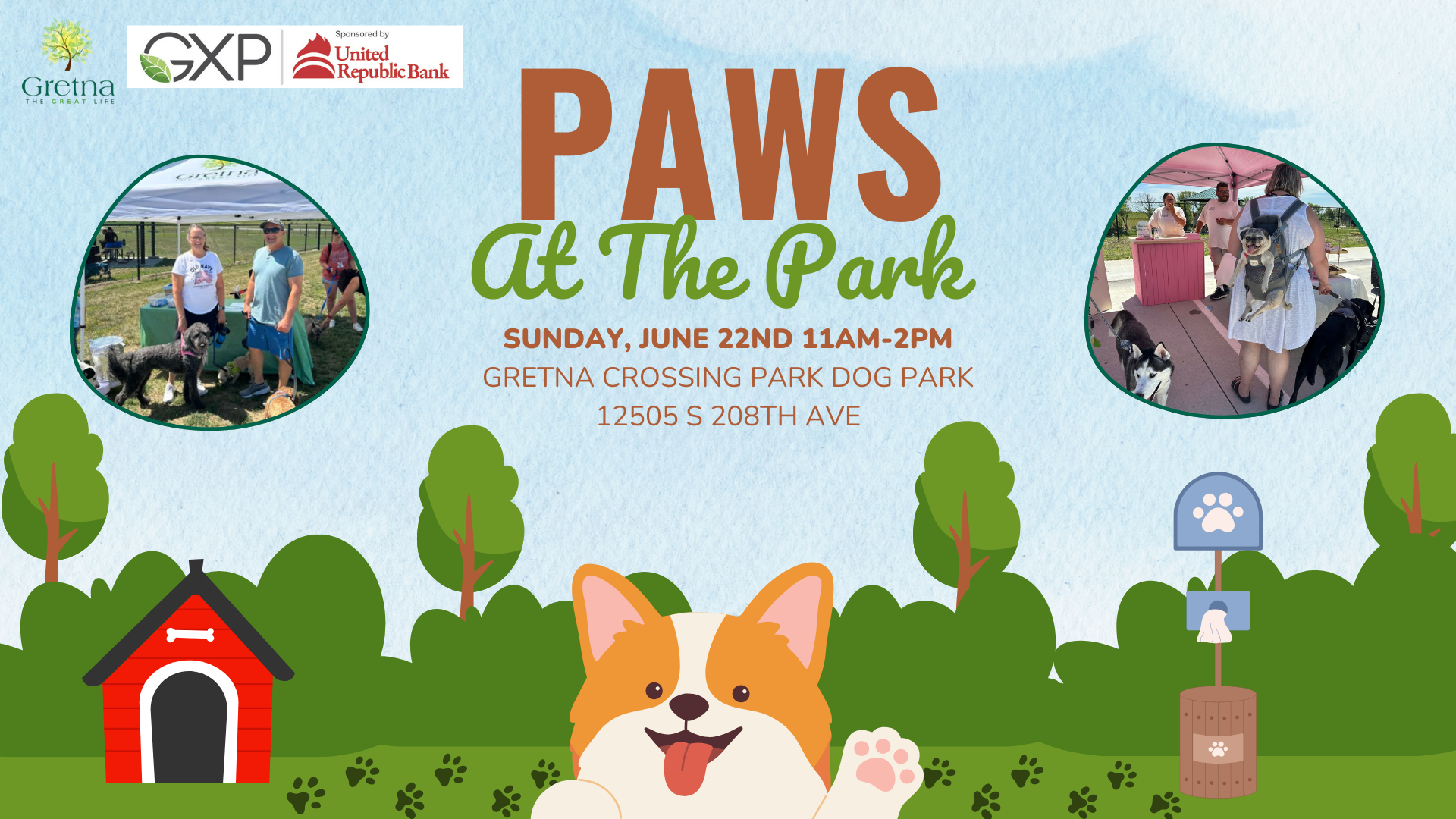 The City of Gretna announces their second annual Paws at the Park, located at the Gretna Crossing Park sponsored by United Republic Bank. The Dog Park is located at 12505 S 208th Ave, Gretna NE.