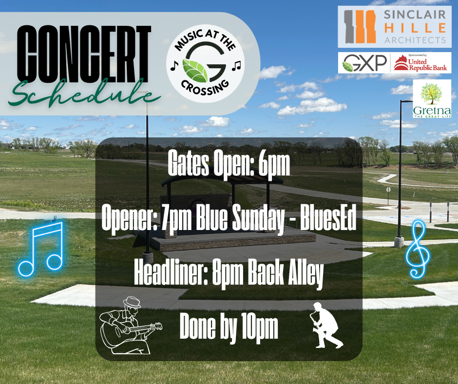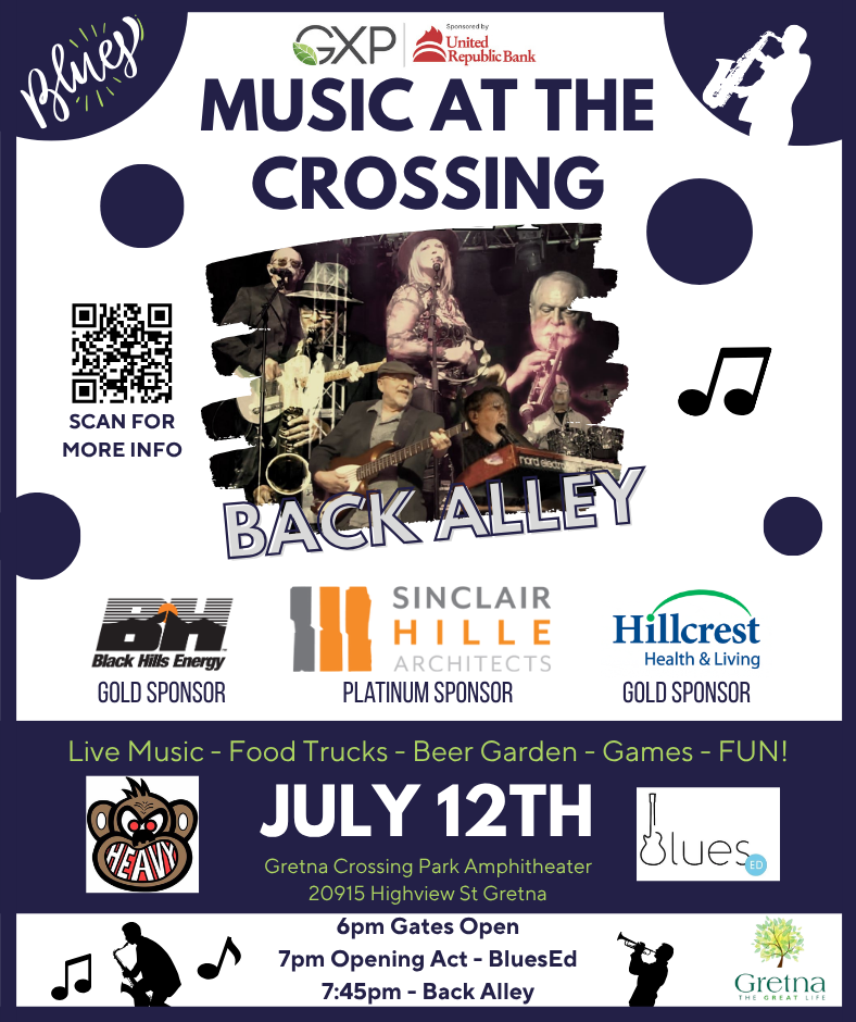 Join the City of Gretna at the Gretna Crossing Park Amphitheater for Blues Night, featuring two incredible bands that will keep the tunes going until 10 PM! 🎸✨