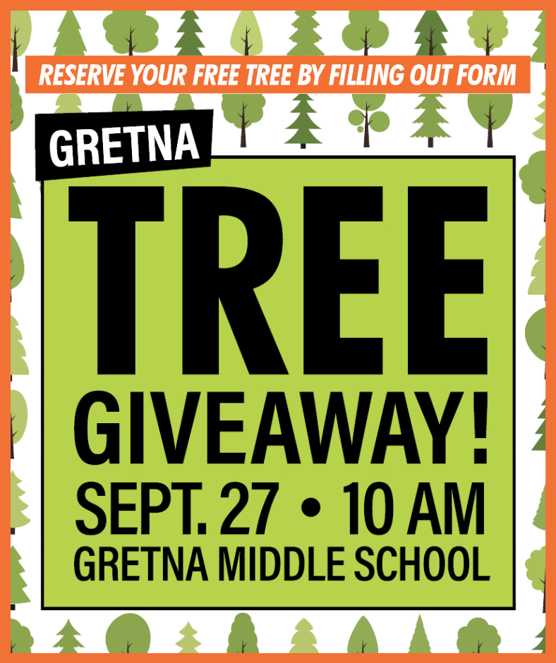 We’re excited to share that the City of Gretna Tree Board is hosting their annual Free Tree Giveaway on Saturday, September 27th at Gretna Middle School!